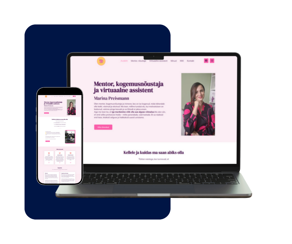 - Kliendile suunatud sisu: tekstid ja ülesehitus on loodud nii, et need toetavad mentori ja virtuaalassistendi teenuste tutvustamist ning kutsuvad külastajat ühendust võtma.